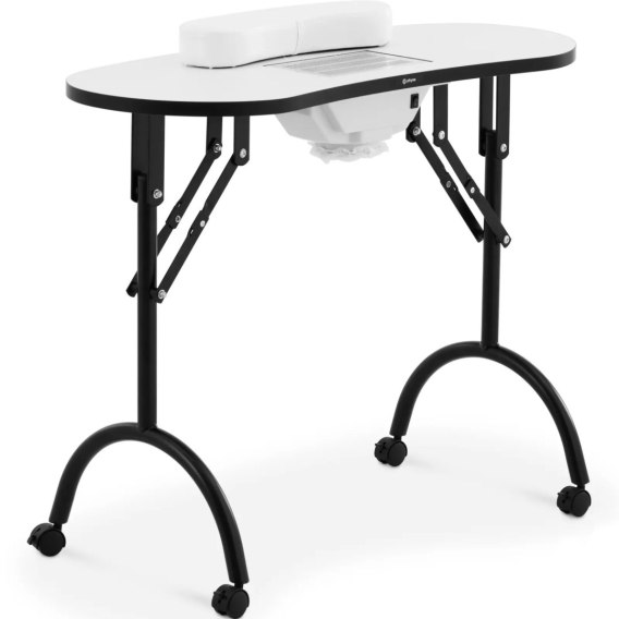 Składany stolik do manicure marki Physa zapewnia dodatkową przestrzeń do pracy w salonie. Błyskawicznie się go rozkłada. Sprawdzi się na targach kosmetycznych, świeżym powietrzu lub w domach klientów. Blat zapewnia wystarczająco dużo miejsca do wygodnej pracy. Na jego środku umieszczono pochłaniacz, który usuwa kurz i pozostałości po paznokciach. Dołączona do zestawu poduszka pod dłonie zapewnia maksymalny komfort podczas zabiegów. Niezależnie od tego, czy chodzi o manicure klasyczny, malowanie paznokci, czy o pracę biurową, biurko kosmetyczne można wykorzystać na wiele sposobów. Gładkie powierzchnie są łatwe w czyszczeniu. Wysoka jakość wykonania i trwała płyta MDF sprawiają, że stół do manicure sprosta wszystkim wyzwaniom. Jednocześnie zachwyca długą żywotnością i nieskazitelnym wyglądem. Dzięki 4 kółkom można wygodnie ustawić biurko do manicure w dogodnym miejscu.