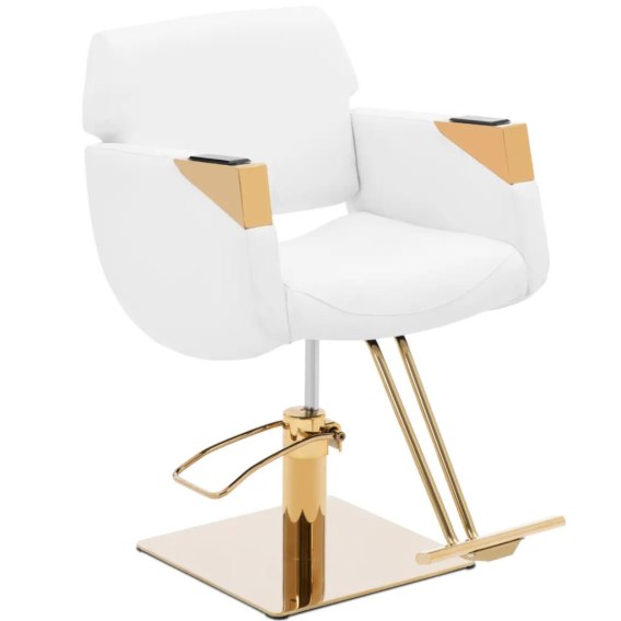 Fotel fryzjerski barberski kosmetyczny z podnóżkiem Physa PENRYN - biało złoty