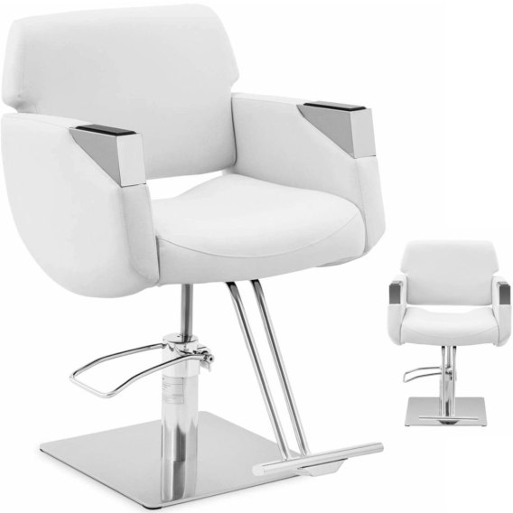 Kod producenta: 10040621 Fotel fryzjerski marki Physa sprawdzi się zarówno w salonie fryzjerskim, tatuażu, jak i kosmetycznym. Jego atrakcyjny wygląd w kolorze białym i srebrnym dodaje stylowego akcentu w salonie. Krzesło posiada elegancki srebrny podnóżek. Fotel wyposażono w wygodne wysokie podłokietniki. Pianka, którą wypełniono mebel jest miękka i zachowuje swój kształt. Jest łatwa w czyszczeniu, odporna na kurz i wodę. Wysokość regulowana jest w zakresie 880- 1030 mm za pomocą pompy hydraulicznej. Krzesło można obrócić o 360deg;. Stelaż fotela fryzjerskiego wykonany został z wytrzymałej i eleganckiej stali nierdzewnej. Konstrukcja wytrzymuje obciążenie do 200 kg, co przekłada się na wysoki poziom trwałości. Duża podstawa o średnicy 45 cm zapewnia mu dodatkową stabilność. Gładkie powierzchnie podkreślają jego stylowy wygląd. Cechy produktu: