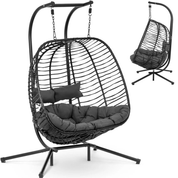 - Podwójny przytulny fotel wiszący z ramą i wygodną poduszką o grubości 8 cm,
