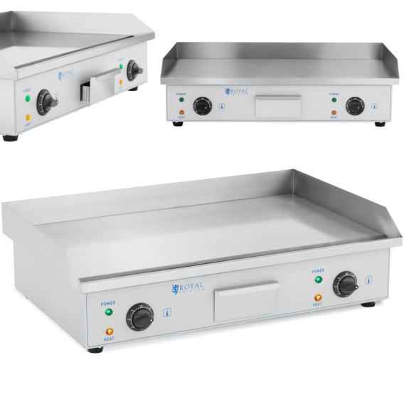 Kod producenta: 10012037 Płyta grillowa marki Royal Catering zaprojektowana została do lokali gastronomicznych, restauracji, barów, bufetów a także do food trucków. Sprawdzi się podczas smażenia: kiełbasek, bekonu, naleśników, tostów czy steków. Duża wydajność sprzętu wynika z mocy 2 x 2200 W. Urządzenie posiada dwa oddzielne termostaty, które pozwalają ustawić odrębną temperaturę dla każdego z pól grzewczych. Temperaturę reguluje się w zakresie 0-300deg;C. Płyta ma wymiary 730 x 400 mm, co pozwala usmażyć jednocześnie wiele produktów. Solidną obudowę wykonano ze stali nierdzewnej, jest trwała i jest łatwa do wyczyszczenia. Grill posiada także wygodną tackę ociekową na tłuszcz. Całość jest bardzo solidna oraz - dzięki antypoślizgowym nóżkom - stabilna. Cechy produktu: