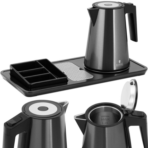 Hotelowy zestaw powitalny czajnik elektryczny z tacą 1,2 l 1800 W czarny