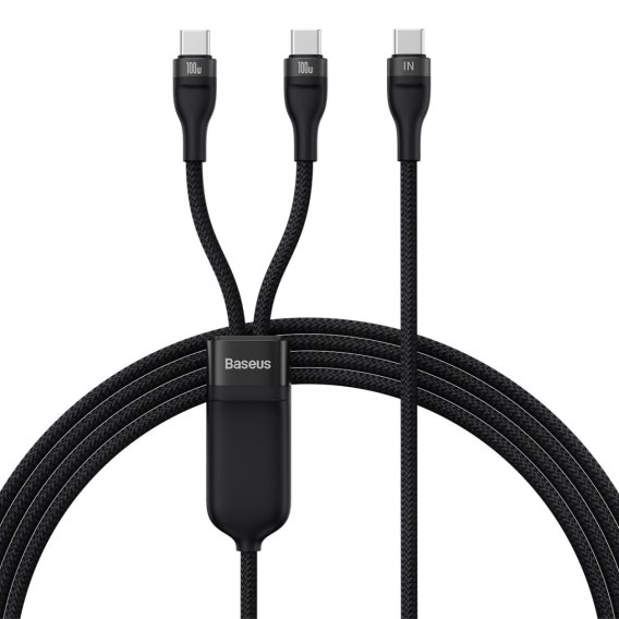 Kabel przewód do szybkiego ładowania Flash Series 2w1 USB-C 2xUSB-C 100W 1.5m czarny