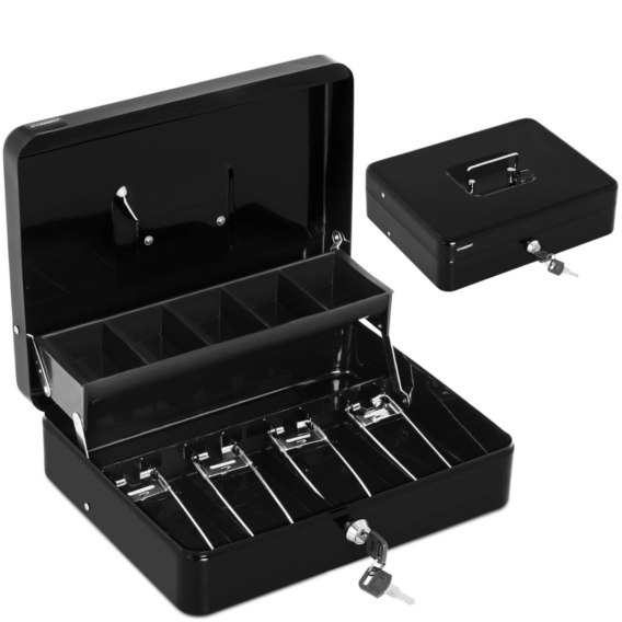 Kasetka stalowa na pieniądze z tacką na monety bilon