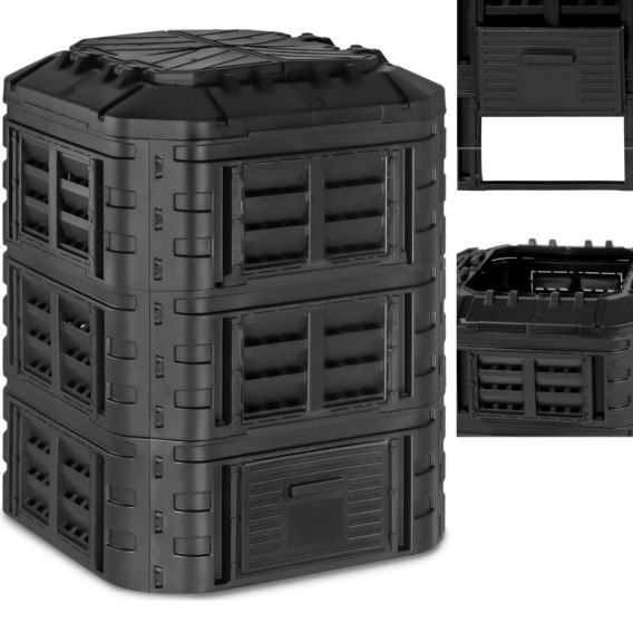 Konstrukcję kompostownika o pojemności 860 l wykonano z trwałego polipropylenu. Jest ona łatwa w montażu, dzięki modułowej budowie i zawiasom. Dla zwiększenia stabilności można przymocować ją za pomocą haków do podłoża. Ściany posiadają otwory wentylacyjne i system nawadniania kropelkowego, zapewniające idealne warunki do rozkładania się odpadków. Konstrukcja ścian zapobiega dostawaniu się do wnętrza większych zwierząt. Kompostownik przy gruncie wyposażony został w klapę, do usuwania uzyskanej gleby ogrodowej. Do zwiększenia efektywności kompostownika można zastosować dżdżownice, chrząszcze, bakterie i grzyby a także obornik. Cechy produktu:
