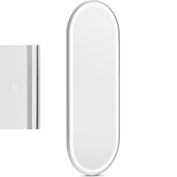 - Lustro z oświetleniem LED o stylowym wyglądzie z subtelną srebrną ramą pasującą do każdego wnętrza salonu,