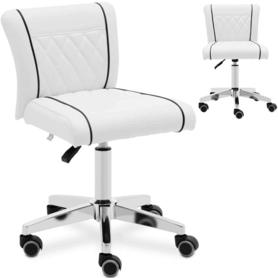 Krzesło kosmetyczne obrotowe z oparciem na kółkach 45-59 cm GLAND - białe