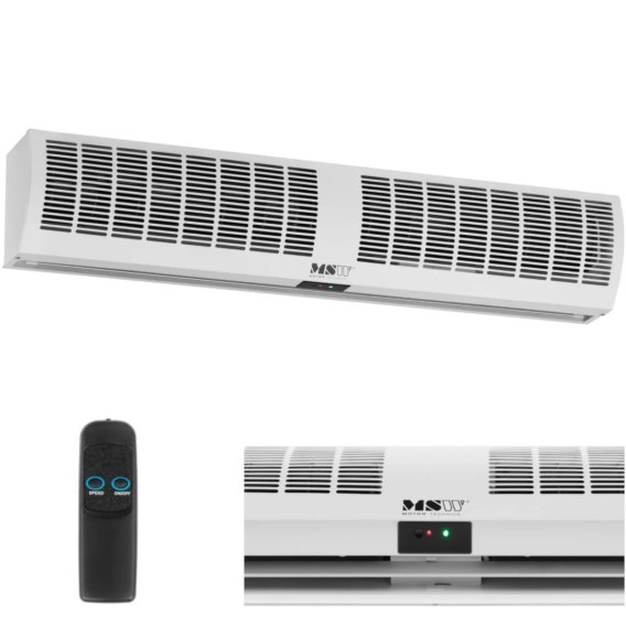 Kod producenta: 10062639 Kurtyna powietrzna marki MSW stworzy barierę ciepłego lub zimnego powietrza przy wejściach do sklepów, biur czy innych pomieszczeń. Pionowy przepływ zapobiegnie wychłodzeniu się nagrzanych pomieszczeń wewnętrznych przez niskie temperatury z zewnątrz. Latem kurtyna powietrza niezawodnie utrzyma chłód z klimatyzacji w pomieszczeniu, z dala od ciepłego powietrza z otoczenia. Oznacza to, że w magazynie, biurze lub pomieszczeniu biznesowym będzie zawsze panować przyjemny klimat, nawet przy otwartych drzwiach. Kurtynę można przymocować na wysokości do 3,5 m za pomocą czterech dostarczonych śrub montażowych. Można ją zainstalować na suficie, albo na ścianie. Urządzenie o mocy 130 W wydmucha powietrze z prędkością do 11 m/s, umożliwiając wymianę ciepła.Do wyboru są dwa tryby ogrzewania, które zapewniają ciepłe powietrze skierowane pionowo w dół. Kurtynę można włączyć też bez ogrzewania, co zapewni przyjemny chłód latem. Przepływ powietrza utrzyma też owady i kurz z dala. Sterowanie jest równie elastyczne, co proste. Wystarczy użyć przycisków bezpośrednio na urządzeniu lub wygodnie wybrać różne tryby za pomocą pilota zdalnego sterowania. Model wygeneruje do 56 dB, dzięki czemu nie trzeba martwić się o irytujące szumy. Dzięki solidnej konstrukcji elektryczna kurtyna nada się również do pracy ciągłej. Obudowa wykonana jest ze stali malowanej proszkowo. Powłoka ochroni urządzenie przed rdzą i zapewni jej estetyczny wygląd. Listwy wykonano z żaroodpornego tworzywa ABS. Dzięki temu model jest trwały, łatwy w utrzymaniu i niezawodny. Kurtyna powietrzna pozwoli poprawić jakość powietrza w pomieszczeniach. Cechy produktu:
