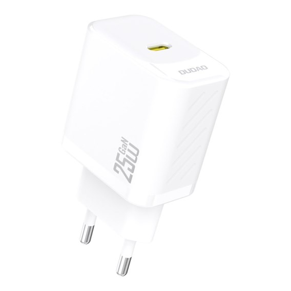 Kod produktu: 1027652 Ładowarka sieciowa Dudao A27 25W GaN USB-C to idealne rozwiązanie dla osób poszukujących szybkiego, bezpiecznego i kompaktowego sposobu na ładowanie swoich urządzeń. Wyposażona w nowoczesną technologię GaN, zapewnia efektywne ładowanie o mocy 25W, jednocześnie minimalizując nagrzewanie się urządzenia. Dzięki obsłudze Power Delivery (PD) możesz ładować nie tylko smartfony, ale także tablety i inne kompatybilne urządzenia. Kompaktowe wymiary i antypoślizgowa faktura sprawiają, że jest łatwa w transporcie i użytkowaniu. Jej bezpieczna i niezawodna konstrukcja gwarantuje ochronę przed przegrzaniem i przepięciami. Szybkie ładowanie GaN 25W
