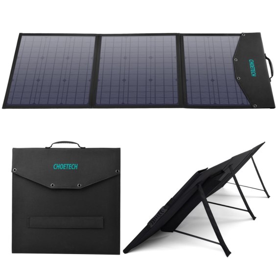 Kod produktu: 1016684 Składana ładowarka solarna USB Choetech o mocy do 120 W ze złączami DC, USB C i 2 x USB (SC008)