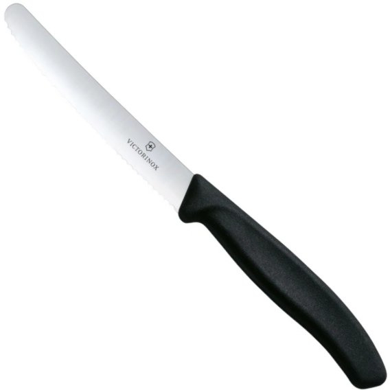 Nóż do pomidorów z zaokrąglonym ostrzem ząbkowany 110/219 mm - czarny
