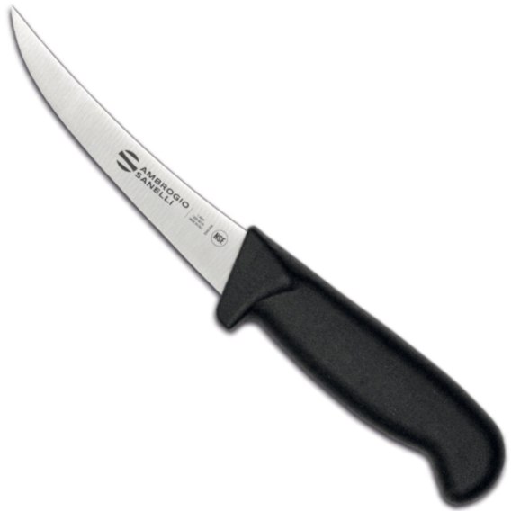 Nóż marki Ambrogio Sanelli z linii SUPRA to profesjonalne narzędzie przeznaczone dla szefów kuchni. Sprawdzi się szczególnie do oddzielania mięsa od kości. Posiada ostrze wykonane z wysokiej jakości stali nierdzewnej NITRO-B, w której dodatek cząsteczek azotu znacznie polepsza właściwości antykorozyjne oraz końcową twardość po ulepszaniu cieplnym. Ergonomiczny uchwyt wykonany został z trwałego tworzywa SEBS, które jest elastyczne i odporne na działanie czynników atmosferycznych, ozonu i UV. Nóż nadaje się do sterylizacji, jest wysoce odporny na uderzenia i korozję. Nie nadaje się do mycia w zmywarce. Cechy produktu: