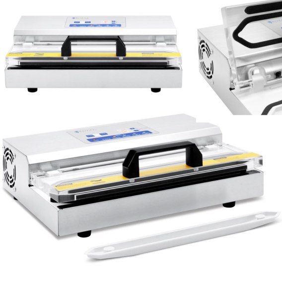 Kod producenta: 10011733 Pakowarka próżniowa marki Royal Catering umożliwia przedłużenie świeżości żywności. Sprawdzi się w hotelach, restauracjach czy prywatnych domach. Urządzenie posiada moc 580 W. Podwójna pompa wysysa powietrze z woreczka o maksymalnej szerokości 31 cm. Po odessaniu zamykany jest otwór za pomocą zgrzewu o wymiarach 1,8 x 2 mm. Zapobiega to psuciu się żywności. Zapakowane próżniowo produkty dłużej zachowują świeżość, a w stanie zamrożonym mogą być przechowywane przez wiele miesięcy. Nadają się także do gotowania metodą sous vide. Obudowę pakowarki wykonano ze stali nierdzewnej. Jej obsługa za pomocą panelu dotykowego jest intuicyjna. Wydajność urządzenia wynosi 16 l/min i oferuje automatyczne i ręczne odsysanie oraz zgrzewanie a także tryb marynowania. Cechy produktu: