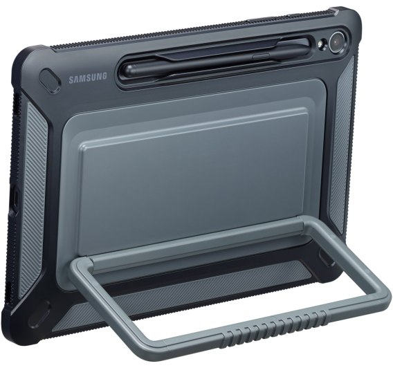 Etui marki Samsung posiada militarny certyfikat wytrzymałości MIL-STD 810G-516.7 - oznacza to, że tablet jest chroniony przed lekkimi upadkami i uderzeniami. Wbudowana z tyłu obudowy podstawka pozwoli na wygodne oglądanie treści na swoim tablecie w trybie horyzontalnym. Dzięki szerokiej regulacji może również służyć jako uchwyt. Sprawia to, że tablet nie wysunie się z dłoni nawet podczas dynamicznych ruchów. Etui posiada wbudowany uchwyt na rysik S Pen. Jest to praktyczne rozwiązanie, dzięki któremu jest on zawsze pod ręką. Etui na Galaxy Tab S9 zostało wykonane z materiałów pochodzących z recyklingu, które przekształcają odpady konsumenckie, zmniejszając emisje i zwiększając wydajność. Najważniejsze cechy: