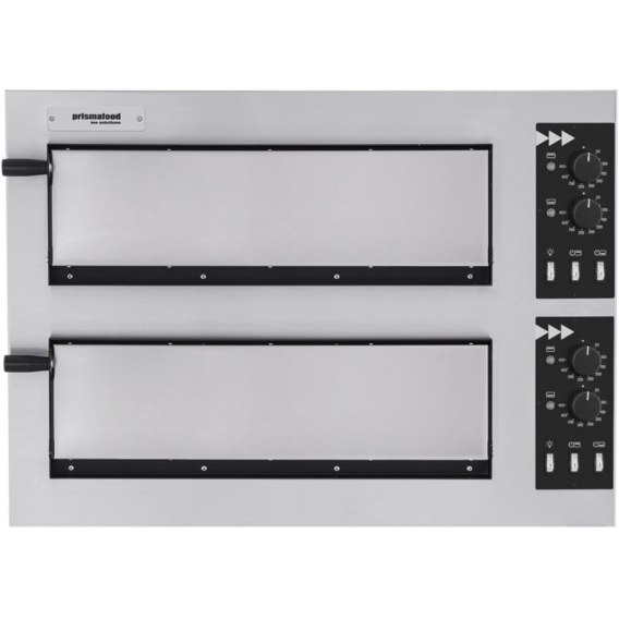 Kod producenta: 1F010036 Piec do pizzy firmy Prismafood umożliwia jednoczesny wypiek 2 pizz ø450 mm. Oświetlenie komory ułatwia obserwację wypieku pizzy w komorze. Dno komory wyłożone jest szamotem dla szybkiego i równomiernego nagrzania komory. Urządzenie posiada oddzielone sterowanie temperaturą dzięki osobnym termostatom dla każdej grzałki. Front pieca wykonany został ze stali nierdzewnej, a pozostała część obudowy ze stali malowanej na czarno. Cechy produktu: