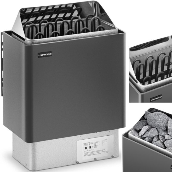 Piec do sauny marki Uniprodo sprawdzi się do pomieszczeń o wielkości 9-13 m3. Moc urządzenia wynosi 9 kW, co sprawdza się dla dedykowanej kubatury i pozwala osiągnąć temperaturę w zakresie 30-110deg;C, którą utrzymuje wbudowany termostat. Piec w razie potrzeby można zawiesić na ścianie. Wymaga panelu kontrolnego o nr. 10250225 lub10250226. Cynkowo-aluminiowa obudowa zapewnia wytrzymałość pieca i znosi panujące w saunie warunki. Stopień ochrony IPX4 zapewnia ochronę przed wilgocią i ochlapaniem wodą.