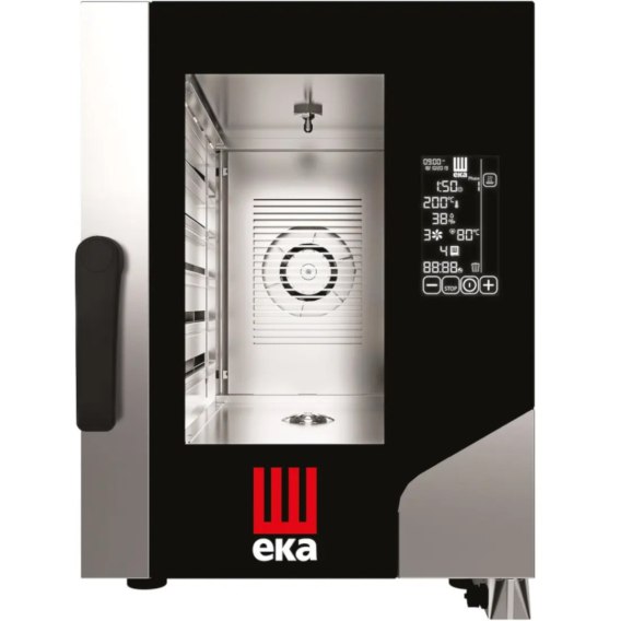 Kod producenta: MKF511BM Piec konwekcyjno-parowy Millenial Black Mask Gastro marki Tecnoeka to urządzenie nowoczesne, wydajne i niezawodne, idealne do praktycznie wszystkich zastosowań w ramach gotowania i pieczenia. Seria pieców MILLENNIAL BLACK MASK COMPACT to tylko 500 mm szerokości, które sprawia, że piec zmieści się w każdej, nawet najmniejszej kuchni. Elektroniczny 7-calowy, dotykowy panel sterowania umożliwia wygodne i precyzyjne ustawienie żądanych parametrów gotowania Piece MILLENNIAL BLACK MASK posiadają dwa opatentowane rozwiązania: Airflowlogictrade; - to opatentowane i innowacyjne rozwiązanie polegające na całkowitym przeprojektowaniu deflektora (osłony wentylatora). Efektem tego zabiegu jest poprawa cyrkulacji przepływu powietrza Humilogictrade; - nowy opatentowany system nawilżania polegający na podawaniu wody bezpośrednio z wentylatora. Zapewnia on wysoki poziom wilgoci i znacznie mniejsze zużycie wody. Wbudowany port USB to rozwiązanie zalecane dla kuchni sieciowych. Wystarczy zaprogramować tylko jeden piec. Do pozostałych można wgrać program za pośrednictwem portu USB. Do najważniejszych funkcji urządzenia należą: