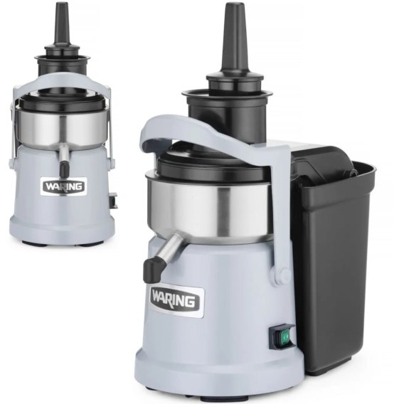 Kod producenta: WJX90XE Sokowirówka z wyrzutem pulpy, heavy-duty firmy Waring jest kompaktowa i dość cicha, a równocześnie przystosowana do ciągłej pracy dzięki dużemu, 11-litrowemu zbiornikowi na resztki i nieprzerwanemu wyrzutowi pulpy. To sprawia, że świetnie sprawdza się w profesjonalnym użytku do szybkiego przygotowywania odżywczych soków z warzyw i owoców. Przeznaczona do dowolnych owoców i warzyw - posiada szeroki otwór wrzutowy o średnicy 8 cm, odpowiedni do dużych produktów. Obudowa została wykonana z metalu malowanego proszkowo, a kosz filtrujący, zbiornik na sok i tarcza tnąca ze stali nierdzewnej. Obrotowy, niekapiący kurek zapewnia czystość stanowiska podczas pracy. Wysokość kurka pozwala na umieszczenie bezpośrednio pod nim dzbanka o pojemności 1,4 l. Urządzenie posiada zabezpieczenie przed przegrzaniem. Cechy produktu: