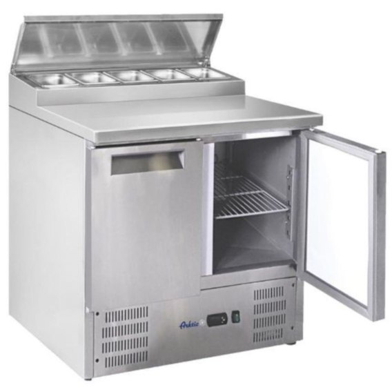 Kod producenta: 236222 Stół chłodniczy sałatkowy 2-drzwiowy z nadstawą marki HENDI (dostarczany bez pojemników GN. Obudowa szafy wykonana z wysokogatunkowej stali nierdzewnej. W stole chłodniczym zostało zastosowane chłodzenie statyczne wspomagane wewnętrznym wentylatorem z agregatem dolnym. W celu zachowania jak największej higieny zainstalowano w urządzeniu systemu automatycznego odparowania skroplin. Dodatkowo stół posiada nadstawę z pokrywą na pojemniki 5x GN 1/6 (150 mm), która idealnie nadaje się do przechowywania gotowych produktów. Cechy produktu: