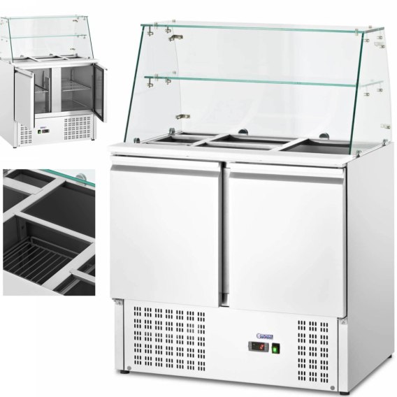 Stół chłodniczy sałatkowy 2-drzwiowy z nadstawą szklaną 7x GN 240 l