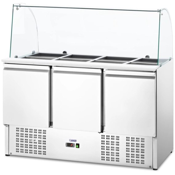 Stół chłodniczy sałatkowy 3-drzwiowy z nadstawą szklaną 8x GN 368 l
