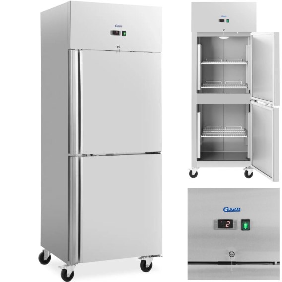 Kod producenta: 10013268 Szafa chłodnicza marki Royal Catering oferuje mnóstwo miejsca, aby zawsze mieć pod ręką wystarczającą ilość schłodzonego towaru, nawet dla dużej liczby klientów. Lodówka stoi na czterech kółkach, co pozwala wygodnie ją przestawić nawet po nierównej podłodze. Hamulce zapewniają jej stabilność. Chłodziarka jest zamykana na klucz, łatwo można zabezpieczyć jej zawartość przed dostępem nieupoważnionych osób. Szafa chłodnicza ma pojemność 373 l. Przestrzeń wewnątrz została podzielona trzema półkami, które łatwo można ustawić na różnych wysokościach według potrzeb. Delikatny mechanizm otwierania i zamykania drzwi skrzydłowych ułatwi korzystanie z nich nawet podczas intensywnej pracy w kuchni, gdy nie masz wolnych rąk. Przyjazny dla środowiska czynnik chłodniczy R290 zapewnia szybkie chłodzenie. Lodówka posiada doskonałe właściwości termodynamiczne i imponuje wysoką efektywnością energetyczną. Za pomocą termostatu cyfrowego można precyzyjnie określić temperaturę w zakresie od 2 do 8deg;C. Funkcja automatycznego odmrażania sprawia, że chłodziarka zawsze będzie wolna od lodu. Zmniejsza to tym samym częstotliwość konserwacji i umożliwia nieprzerwane przechowywanie żywności bez konieczności rozmrażania. Obudowa lodówki wykonana została ze stali nierdzewnej, jest odporna, trwała i łatwa w pielęgnacji. Cechy produktu: