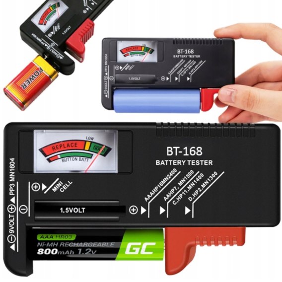- Analogowy tester do pomiaru napięcia baterii i akumulatorków,