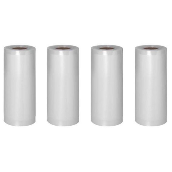 Zestaw moletowanych worków próżniowych w rolkach (4 szt.) o szerokości 20 cm nadaje się do pracy z pakowarkami listwowymi oraz komorowymi. Długie rękawy (600 cm każdy) można uciąć w dowolnym miejscu, tak aby z łatwością dostosować wielkość woreczków do pakowanego produktu. Specjalna struktura kanałów punktowych sprawia, że powietrze jest usuwane szybciej niż w przypadku innych rozwiązań tego typu. Dzięki temu woreczki znajdą zastosowanie przy pakowaniu żywności, płynów, leków, a nawet dokumentów, biżuterii czy elektroniki.