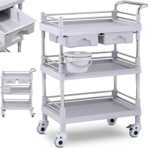 Wózek laboratoryjny zabiegowy kosmetyczny 2 szuflady 3 półki 70 x 64 x 99 cm