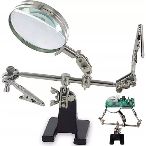 Zestaw do lutowania trzecia ręka z lupą 2.5x regulowanymi uchwytami
