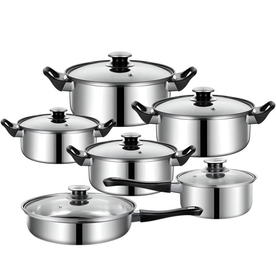 • - 12-elementowy zestaw naczyń kuchennych (6 garnków + 6 pokrywek)