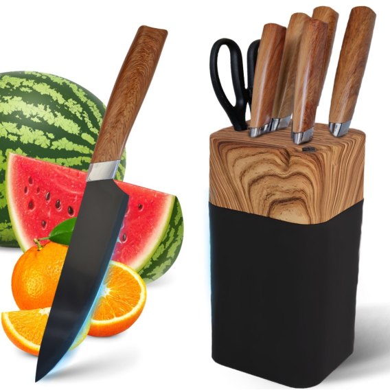 Zestaw noży kuchennych z nożycami ostrzałką w eleganckim bloku - 7 el.
