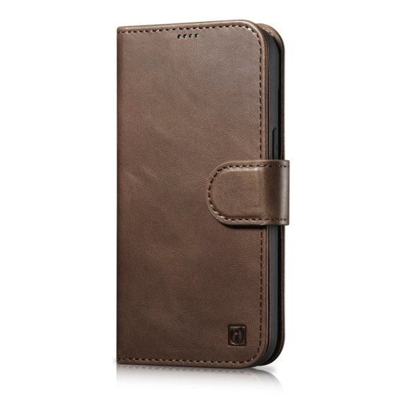 2w1 etui skórzany pokrowiec z klapką iPhone 14 Pro Anti-RFID Oil Wax Wallet Case ciemno-brązowy