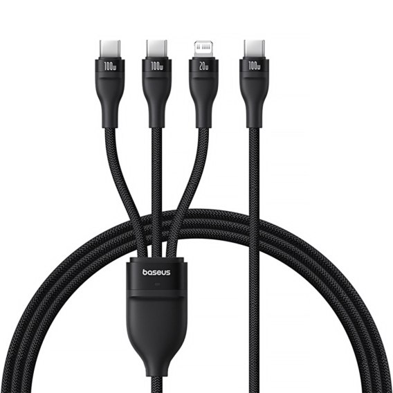Kod produktu: 1027781 Kabel Baseus Flash Series 3w1 to niezastąpione akcesorium dla każdego, kto potrzebuje wydajnego i uniwersalnego rozwiązania do ładowania wielu urządzeń jednocześnie. Dzięki obsłudze mocy 100W i inteligentnemu zarządzaniu energią zapewnia szybkie i bezpieczne ładowanie. Wysokiej jakości materiały, w tym wytrzymały oplot nylonowy i stop aluminium, gwarantują trwałość i odporność na uszkodzenia. Długość 1,5 m oraz trzy dodatkowe odgałęzienia (po 25 cm) sprawiają, że korzystanie z kabla jest niezwykle wygodne. To idealne rozwiązanie dla użytkowników, którzy cenią sobie funkcjonalność i jakość. Jeden kabel - trzy złącza