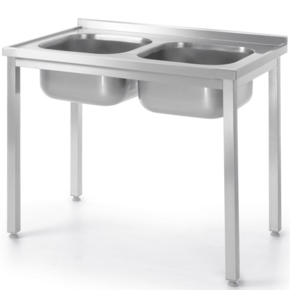 Kod producenta: 817049 Zlewozmywak marki Hendi sprawdzi się w restauracjach, barach, hotelach, szpitalach czy laboratoriach. Jego wytrzymała konstrukcja wykonana została ze stali nierdzewnej AISI 430. Przedmiot posiada dwukomorowy zlew, otwory na syfon i baterię. Komora zlewu tłoczona została z jednego arkusza stali i wspawana bezszczelinowo w blat. Standardowy otwór w dnie syfonu ma średnicę 50 mm, a miejsce na zamontowanie baterii - 30 mm. Rant zabezpieczający ścianę przed zabrudzeniem ma 40 mm. Nogi wykonane zostały z profili 40 x 40 mm. Skręcana konstrukcja mebla umożliwia jego złożenie, magazynowanie oraz przewożenie. Stopki są regulowane w zakresie +25/-5 mm. Dopuszczalne obciążenie blatu wynosi ok. 70 kg/m2. Cechy produktu: