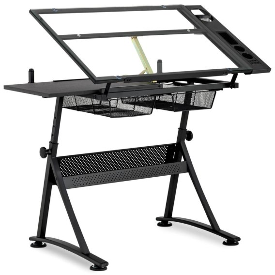 Biurko stół kreślarski szklany z szufladami do rysowania szkicowania 120x60 cm