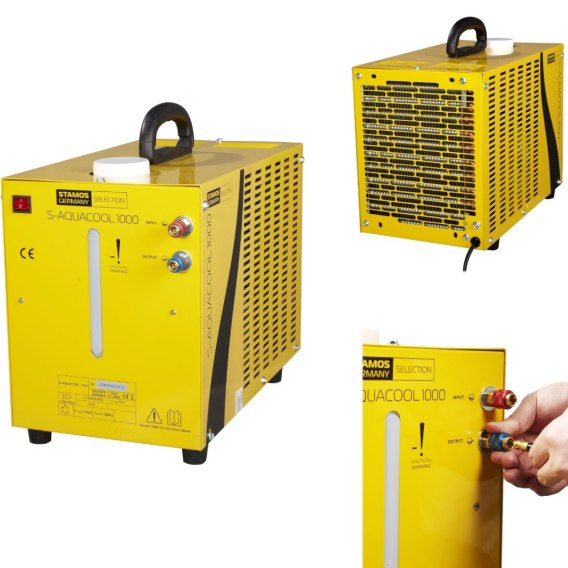 Spawanie prądem powyżej 150 A, zwłaszcza w dłuższych cyklach pracy, wymaga odpowiedniego chłodzenia uchwytu. Wiele spawarek, mimo iż wyposażone są w odpowiednie przyłącze, nie ma w zestawie odpowiedniej chłodnicy, przez co użytkownik nie może wykorzystać całego potencjału urządzenia. Chłodnica wodna niemieckiej marki Stamos Selection nie tylko pozwala osiągnąć pełną wydajność spawarki, ale także przedłuża jej żywotność. Sprawny obieg wody i skuteczne odprowadzanie ciepła z uchwytu zostało osiągnięte poprzez wykorzystanie w urządzeniu wydajnej pompy, wentylatora, miedzianej wężownicy i aluminiowego radiatora. Cechy i funkcje: