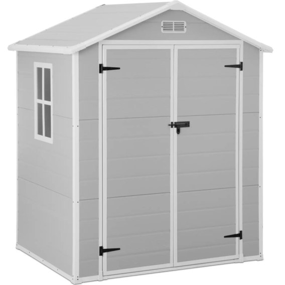 - Szopa ogrodowa jest wyposażona w stały zawias, do którego można zastosować kłódkę (brak w zestawie),