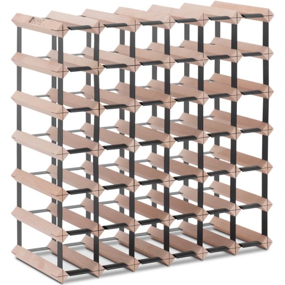 Elegancki stojak regał na wino stal i drewno bukowe - 42 butelki