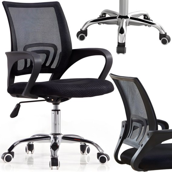 Kod producenta: 1029912 Fotel biurowy obrotowy z mikrosiatki w kolorze czarnym to ergonomiczne krzesło przeznaczone do pracy przy biurku w biurze lub w domu. Wyposażony w regulację wysokości siedziska, wygodne podłokietniki, wyprofilowane oparcie oraz wentylowaną konstrukcję z oddychającej mikrosiatki, zapewnia komfort podczas wielogodzinnego użytkowania. Stabilna podstawa na kółkach umożliwia pełną mobilność, a solidne wykonanie gwarantuje trwałość i wytrzymałość do 150 kg. Cechy produktu: