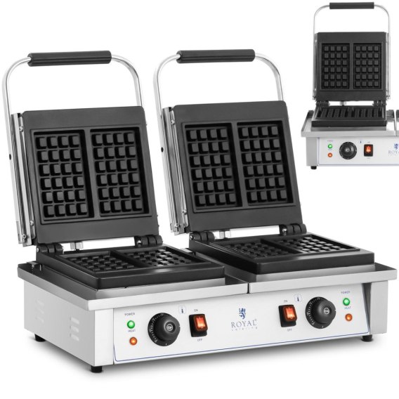 Gofrownica prostokątna podwójna na 4 gofry belgijskie 2 x 2000 W
