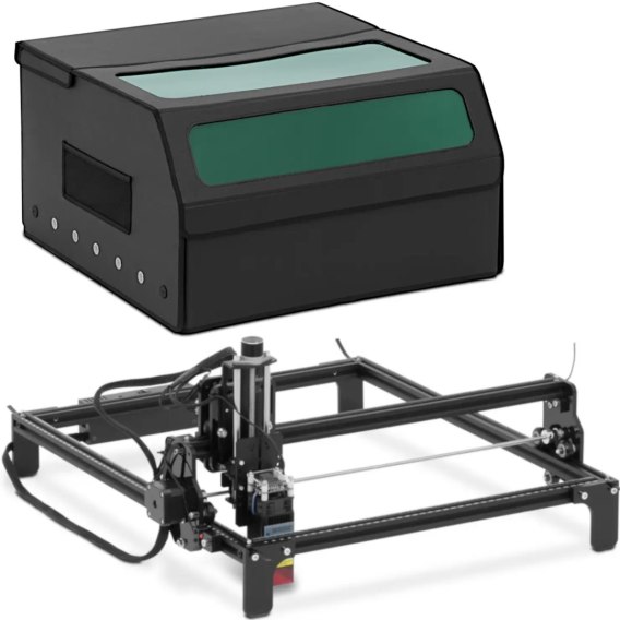 - Osłona z okienkiem i odsysaniem ochroni otoczenie przed promieniami lasera grawerki i umożliwia śledzenie postępów,