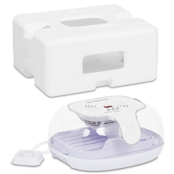 - Zajmujący mało miejsca inkubator do jaj z zakresem temperatur 30 - 39,5#8451; pomieści aż 16 jaj kurzych lub 40 przepiórczych,