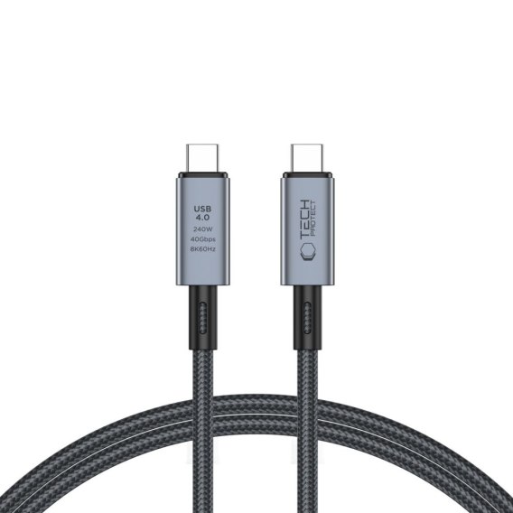 Kabel Tech-Protect UltraBoost Max USB 4.0 to zaawansowane akcesorium, które zaspokoi potrzeby nawet najbardziej wymagających użytkowników technologii. Wytrzymała konstrukcja, wysoka prędkość transferu danych oraz szybkie ładowanie PD240W sprawiają, że jest idealnym wyborem zarówno do użytku domowego, jak i profesjonalnego. Obsługa standardu USB 4.0 zapewnia niesamowitą prędkość przesyłu danych sięgającą aż 40 Gbps, co umożliwia błyskawiczne przesyłanie dużych plików, takich jak filmy w jakości 8K, aplikacje czy kopie zapasowe. Kabel wspiera transmisję wideo o ultrawysokiej rozdzielczości 8K, co czyni go idealnym do pracy z nowoczesnymi monitorami, telewizorami i projektorami, zapewniając krystalicznie czysty obraz i niesamowite detale. Dzięki technologii Power Delivery 240W, kabel pozwala na błyskawiczne ładowanie urządzeń, takich jak laptopy, tablety czy smartfony, co znacząco skraca czas potrzebny na pełne naładowanie baterii. Uniwersalne złącza USB 4.0 umożliwiają kompatybilność z szeroką gamą urządzeń, od laptopów i tabletów, po smartfony i nowoczesne akcesoria. Solidna budowa i wysokiej jakości materiały użyte do produkcji kabla gwarantują jego długowieczność oraz odporność na codzienne zużycie, zapewniając stabilne i niezawodne połączenie. Najważniejsze cechy: