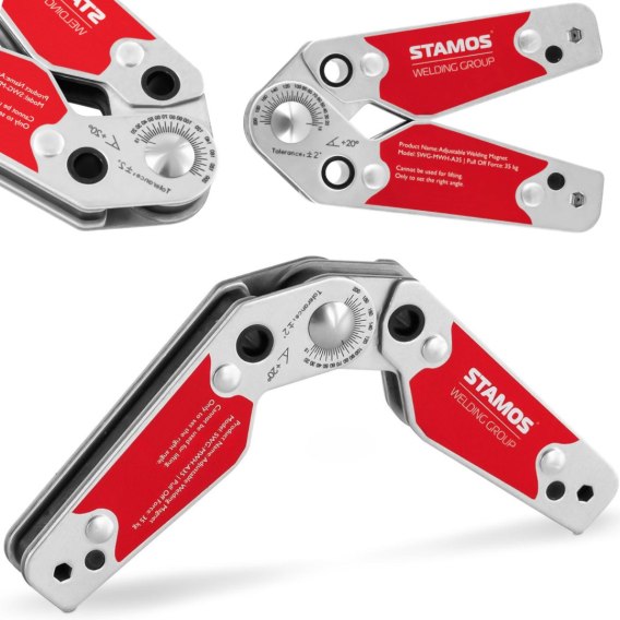 Kod producenta: 10021297 Kątownik spawalniczy marki Stamos sprawdzi się podczas spawania, lutowania czy innych prac montażowych. Konstrukcja urządzenia umożliwia używanie go w różnych pozycjach. Urządzenie można ustawić pod kątami 20-200deg;. Silne połączenie magnetyczne zapewnia najwyższy poziom bezpieczeństwa. Duża nośność do 35 kg pozwala na łączenie ze sobą ciężkich metalowych elementów. Obudowa kątownika wykonana została z trwałej stali nie odkształcającej się. Cechy produktu: