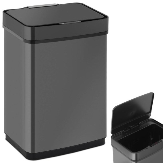 Kosz na śmieci automatyczny bezdotykowy prostokątny z czujnikiem ruchu 30 cm 50 l CZARNY