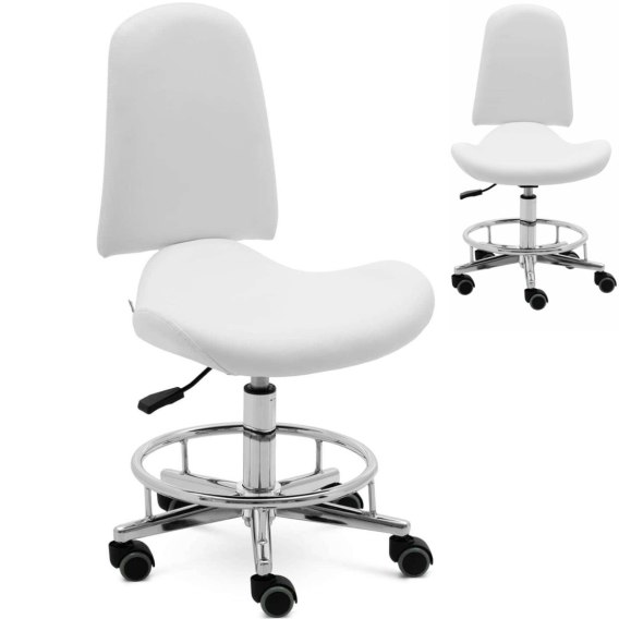 Krzesło kosmetyczne RUE na podstawie jezdnej - białe