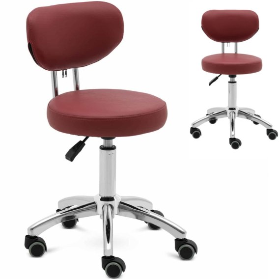 Krzesło kosmetyczne obrotowe z oparciem na kółkach 46-60 cm ASCONA - bordowe