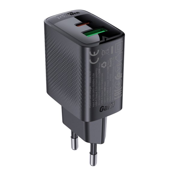 Ładowarka sieciowa A78 GaN USB-A USB-C PD 20W - czarna