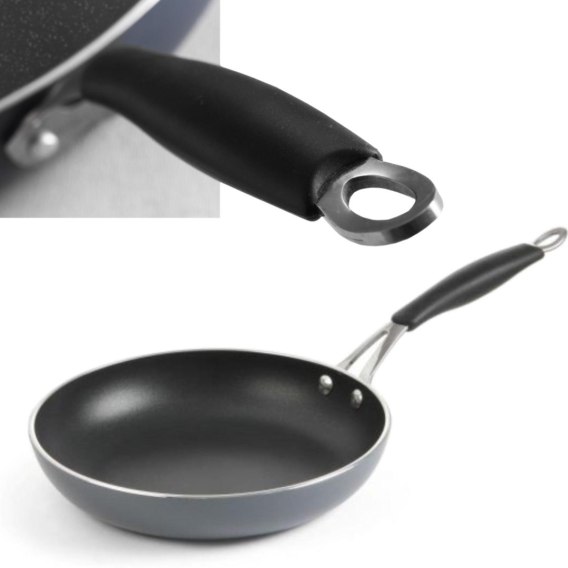 Numer producenta: Hendi 621110 Aluminiowa patelnia z nieprzywierającą teflonową powłoką marki Hendi to naczynie, które doskonale sprawdzi się w barach mlecznych, małych restauracjach, hotelach czy prywatnych domach. Charakteryzuje się szybkim i równomiernym rozprowadzaniem ciepła i uchwytem ze stali nierdzewnej pokrytym antypoślizgowym silikonem. Cechy i funkcje: